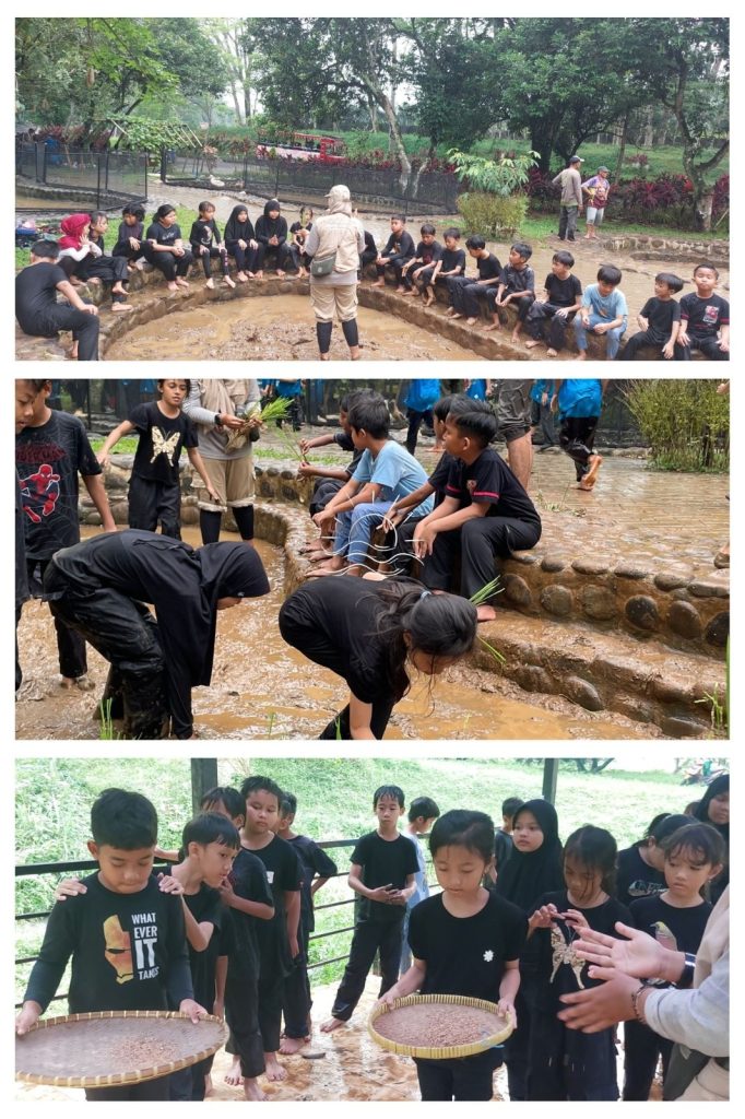 Kegiatan yang menarik adalah siswa berkesempatan untuk praktek menanam padi, memandikan kerbau, bermain dengan unggas seperti bebek dan ayam, serta siswa berkesempatan mengetahui alat penumbuk padi tradisonal bernama lesung. Lesung adalah wadah kayu besar berbentuk perahu yang digunakan bersama alu, tongkat kayu sebagai alat tumbuk beras menjadi padi. Siswa sangat menyukai kegiatan outing ini karena mereka bisa belajar banyak hal yang jarang ditemui di sekitar lingkungan siswa.