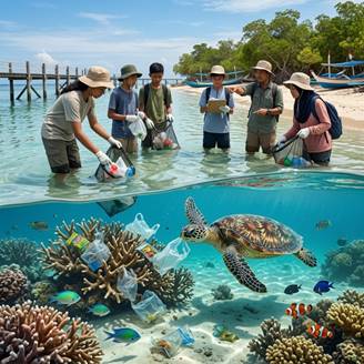 Aksi nyata ini bukan sekadar simulasi, melainkan upaya konkret untuk memperbaiki ekosistem yang rusak, sekaligus menumbuhkan rasa tanggung jawab kolektif dalam menjaga kelestarian hayati laut Indonesia demi masa depan.